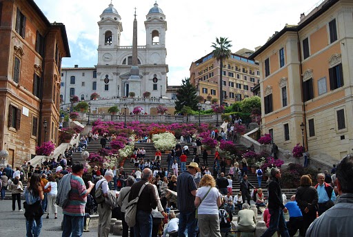 Kevadeti ehitakse Hispaania trepid lilledega ja siis on liivakellakujuline väljak alati paksult magusat elu nautivat rahvast täis. Muide Rooma parimat teed saab maitsta legendaarses Babingtoni tee majas, mis asub treppide külgses ehitises, vasakut kätt (seistes näoga treppide poole). Samuti oskavad Rooma ajalooga veidi täpsemalt kursis olevad külalised üles leida kuulsa Cafe Greco, mis asub Via dei Condotti alguses. Selles kuulsas kohvikus armastasid jalgu puhata ja maitsvat kohvi juua sellised kuulsad intellektuaalid nagu Nikolai Gogol, Edward Grieg, Felix Mendelssohn, Stendhall, heliloojad List, Wagner jt. Kuulsate tegelaste nimekiri on meeletult pikk.