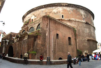 Piazza di Pietra-lt jaluta tänavale Via dei Pastini, mis viib Sind Piazza della Rotonda-le, kus asub üks Rooma sümbolitest, maailmaimeks loetud Pantheon (kaardil roheline märk nr 18). Kõige paremini säilinud Vana Rooma monument – kõigi jumalate tempel, on ühtlasi ka vana maailma arhitektuuri tippsaavutus. Selle kuppel on 43 meetrit kõrge ja ka sama lai. Selle sees oleva pea üheksameetrise diameetriga avause ümber olev pinge aitab kupli raskust tasakaalus hoida. See Iidse Linna "superkuppel" on isegi laiem kui tohutu Peetruse basiilika kuppel. Kusjuures seda tohutut insnerivägitükki ei hoia üleval ükski sammas ega tala. Astu kindlasti sisse, sest Pantheoni tõeline suursugusus ilmneb täiel määral alles siis, kui näed kuplit seestpoolt. Siin on ka kahe kuninga ja Rafaeli hauakambrid.