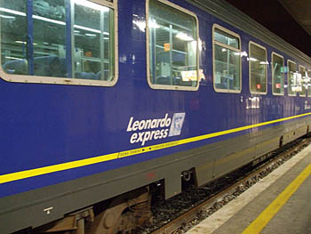На скоростной электричке Leonardo Express Вы быстро доедете из аэропорта до центрального вокзала Термини - главной транспортной развязки города. Время в пути - полчаса. Отправляется электричка из терминала аэропорта в основном каждые 30 мин., а есть интервалы и более короткие, Первая выходит из аэропорта Фиумичино в 06.23, с вокзала Термини в 05.35. Последняя элктричка выходит из аэропорта Фиумичино в 22.53, с вокзала Термини в 22.35.